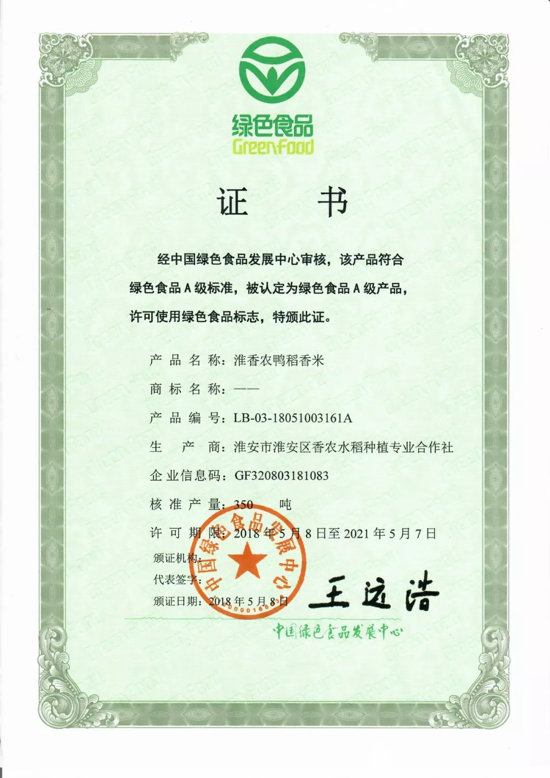 千将就,万将就,吃饭不可将就。淮安市淮安区香农水稻种植专业合作社历时数年,只为打造一款让您安心的,从田间直供餐桌的特供大米。精选优质稻种,米质晶莹剔透,米香浓郁、软糯适口、回味甘香--荣获国家绿色食品认证。